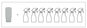 Ponieważ jest to środek wysoce skoncentrowany, możemy zmniejszyć ilość wody zużywanej do jego produkcji. W ten sam sposób zmniejszamy ilość plastiku używanego w produkcji CAPXEL, a także przy jego użytkowaniu, ponieważ ponowne wykorzystanie pojemnika przeznaczonego do mieszana produktu umożliwia wyeliminowanie butelek jednorazowego użytku.
