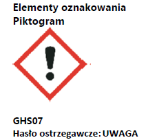 EUH208 Zawiera[Masa poreakcyjna 5-chloro-2-metylo-2H-izotiazol-3-onu i 2-metylo-2H-izotiazol-3-onu (3:1)]. Może powodować wystąpienie reakcji alergicznej.