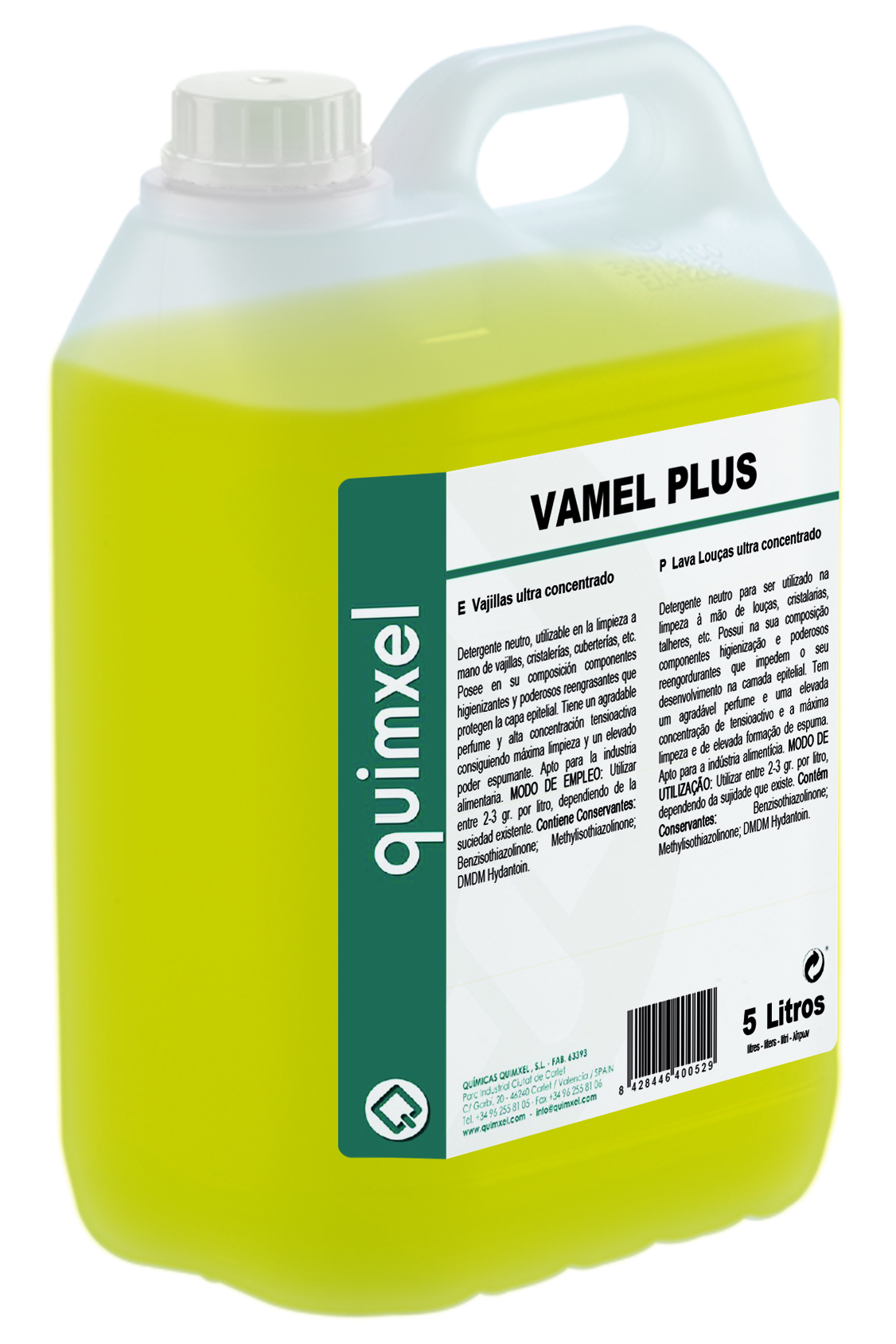 VAMEL PLUS to  ultra-skoncentrowany detergent płynny przeznaczony do ręcznego mycia naczyń, garnków, sztućców, szkła i innych przyborów kuchennych.